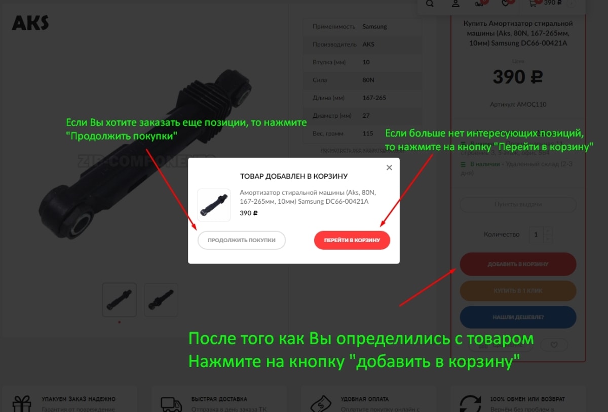 После выбора нужного товара Вы можете оформить заказ, воспользовавшись инструкцией ниже