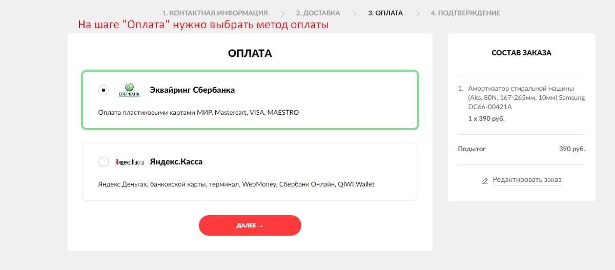 Шаг №6 (Выбор оплаты)