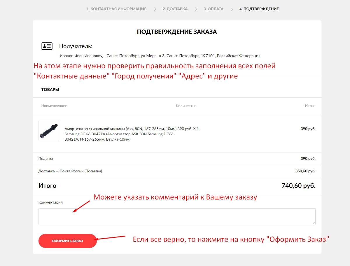 Шаг №7 (Подтверждение заказ)